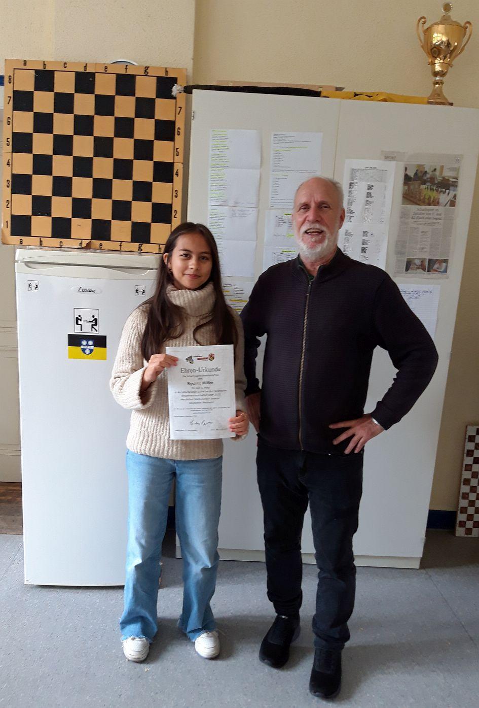 Wir berichteten bereits vom tollen Erfolg Riyanna Müllers, die 2025 Deutsche Meisterin bei der U16 wurde. Nun durfte sie in der „Alten Schule“ die verdiente Ehrung entgegennehmen.