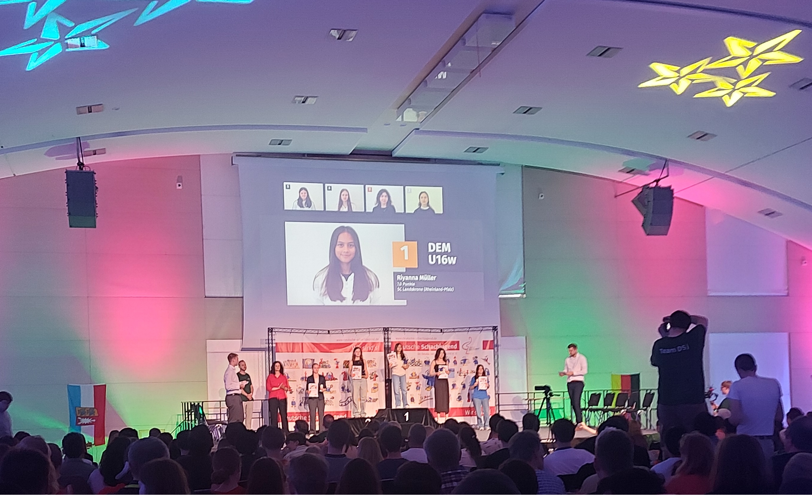 In der U16w begann Riyanna Müller (SC Landskrone) vom Startrang 1 aus und war somit Favoritin. Vor der Schlussrunde lag sie mit einem ganzen Punkt vor ihren Konkurrentinnen. Mit einem Remis in der 9. Runde machte sie den zweiten Deutschen Meistertitel ihrer Karriere klar. Riyanna erzielte 7 Punkte und krönte sich nach dem U12w-Meistertitel 2021 mit dem U16w-Meistertitel 2025. Auch die ein Jahr jüngere Johanna Richter (Sfr. Heidesheim) spielte recht gut und erreichte mit 5,5 Punkten den 8. Platz bei einem Startrang von 7.